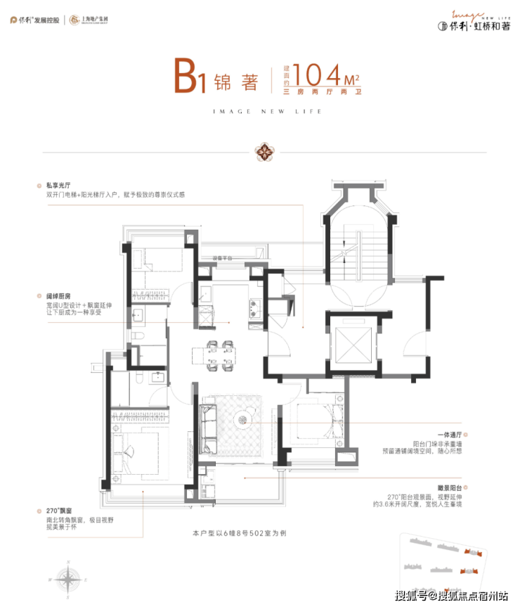 先说户型:如果你熟悉上海市场,你会发现目前市面上的户型普遍会面临:利用率低、收纳空间少、有连廊、卫生间少/功能性差、卧室太小不够等问题。但保利虹桥和著的建面约104㎡3房2卫,却很好的解决了以上所有问题: