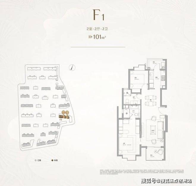 其中建面约101㎡2房2卫,总价预计千万以内,主卧套房不仅拥有独卫,还有步入式的衣帽柜,也可以设计一个梳妆台,尺度感不输市面上120㎡户型的主卧;南北双阳台,彻底告别了传统单阳台在功能上的纠结与妥协,从客厅望出去不再有衣物遮挡光线和视野。