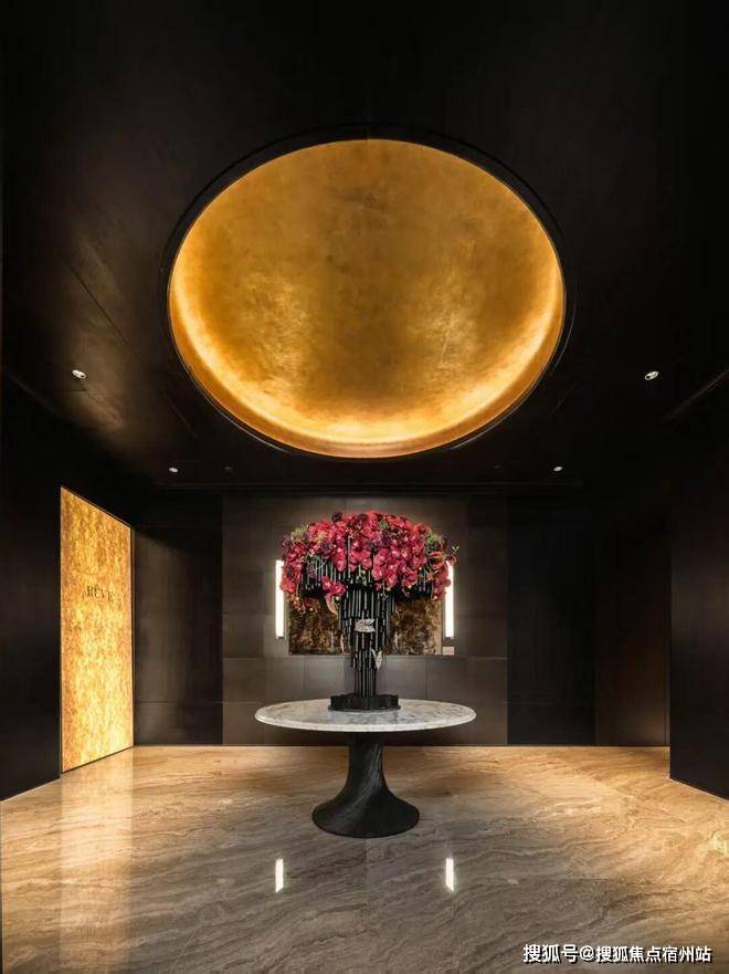 比如全屋仅石材就采用了8种石材及配色,包括祥云灰、卡迪灰等等,并在室内多处空间采用通铺手法,使得空间上下更有机统一。