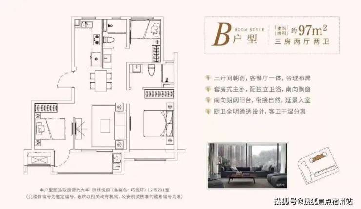 其中建筑面积 约97㎡爆款三房,三开间朝南,以奢阔超长采光面,阳光满溢;宽境阳台,演绎自然生活意境之美;客餐厅一体设计,宴宾待客从容有度;套房式主卧,配备观景飘窗,独立卫浴,匹配主人尊荣。
