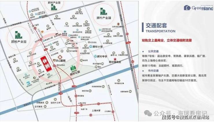 交通:地铁7号线、15号线、双轨交汇顾村公园站