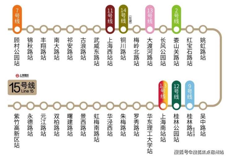 15号线其沿线连通9座高校、4座公园、3个国家级科创园区,链接长风公园、长宁古北、徐汇滨江等知名豪宅区,又与9条既有和在建的线路链接,堪称“沪上换乘之王”。
