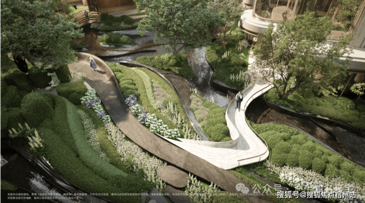 借由全域抬板的高度差,形成罕见垂直落差! 项目依托这一独特地形,打造 多层立体景观体系! 让业主即使身处市中心,也能享受到 推窗被多维度绿意包围的奢侈!