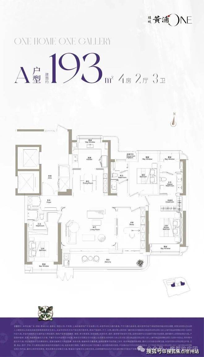绿城·黄浦ONE规划了一幢住宅,两个户型依次排开,规整有序,边套是约193㎡4房2厅3卫,中间套是约155㎡3房2厅2卫户型,是纯粹改善大户型社区。