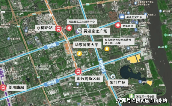 地块所在的紫竹区域占据浦江上游第一湾独特地理位置,核心区域有闵行第一大湖兰香湖,水域面积广阔,岸线绵延,湖光潋滟。