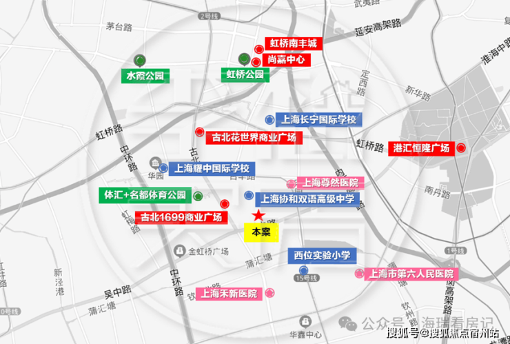交通方面:项目周边有内环高架、中环高架、延安高架,自驾出行方便快捷。出门附近即享地铁15号线,项目距离地铁15号线姚虹路站直线距离仅约570米。周围多轨交环绕,直接对接虹桥商务区、徐家汇商圈,工作休闲两不误。