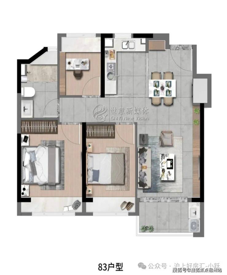 高层建面约83㎡3房2厅1卫