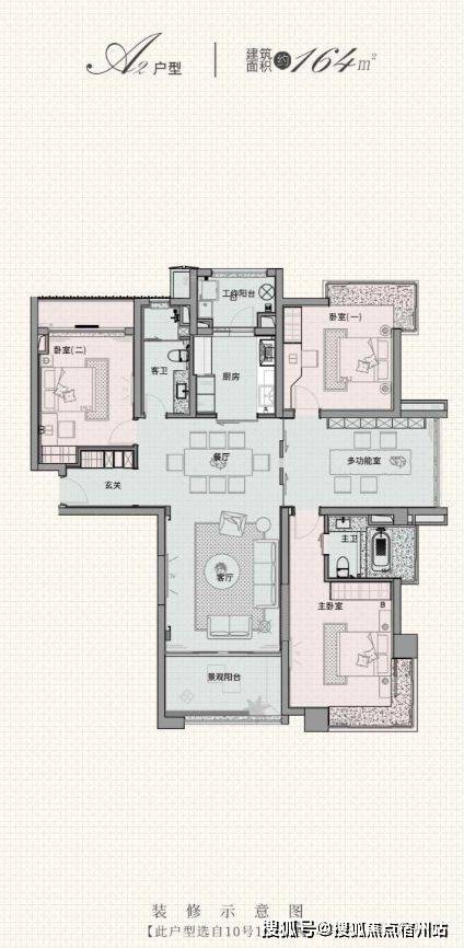 建面约164平3+1房