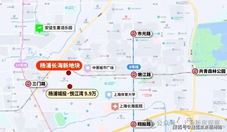 地块邻近五角场和新江湾城, 距离10号线三门路站约1公里左右!另外,项目周边还有规划中的20号线一期东段,建成后去往国和路站会更近一些。