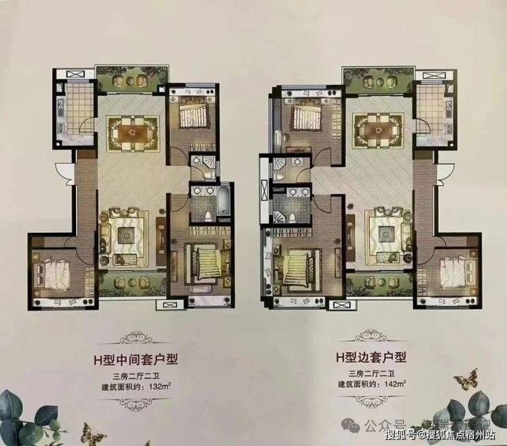 高层:中间套132㎡,边套139-142㎡