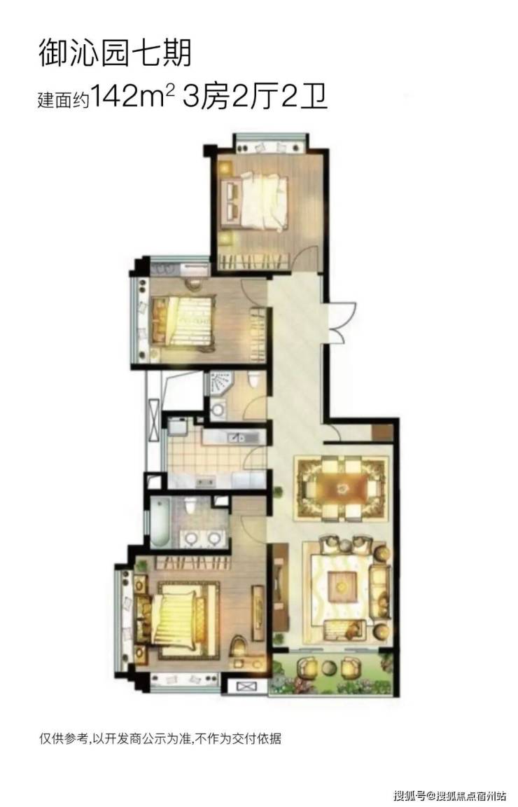 【御沁园】 七期将推出3栋18F高层住宅,两梯两户无连廊设计;将推建面约132~172㎡三房户型,其中: