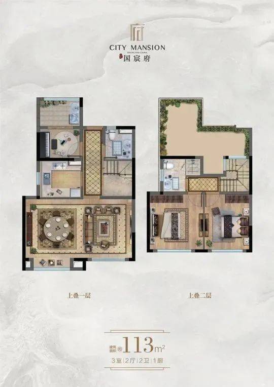 上叠:4-5层89平和113平,有露台和阁楼