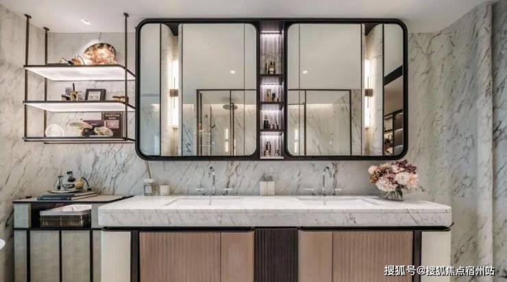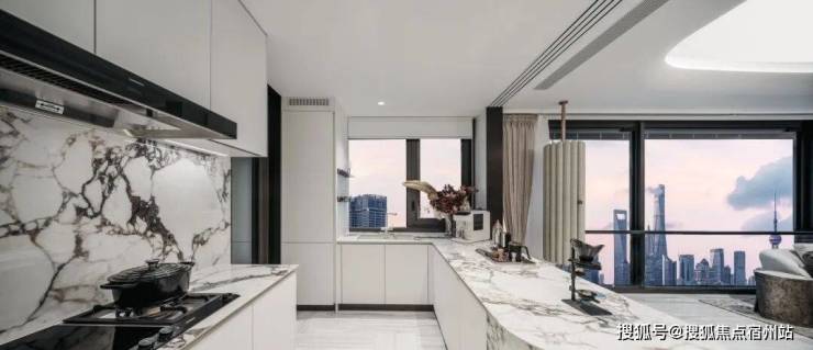 如宝格丽大理石打造的西厨岛台、铂浪高的净水三合一水龙头和一体式大水槽、霍尼韦尔的前置过滤器、全屋软水以及末端净水器系统、来自意大利法罗力燃气热水器、德国唯宝卫浴、当代龙头及花洒......还有全屋华为智能家居系统配置。这一套组合,是真正意义上的顶豪序列配置!