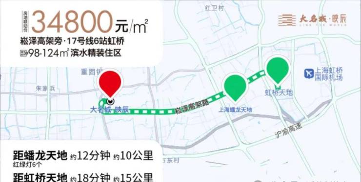在这样的势能下,位于示范区线旁的「大名城映辰」二期,当前(备案均价)约3.48万/㎡的价格犹如原始股,示范区线(在建)3站到虹桥,4站到华为研发基地,未来大有可期,紧抓机遇,抢在区域价值腾飞前!