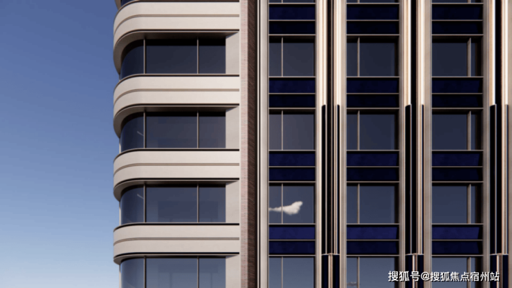 采用大量弧线工艺,包括转角玻璃阳台、弧形铝板、墙面线条和大门线条等,致敬了邬达克装饰艺术派的设计美学。