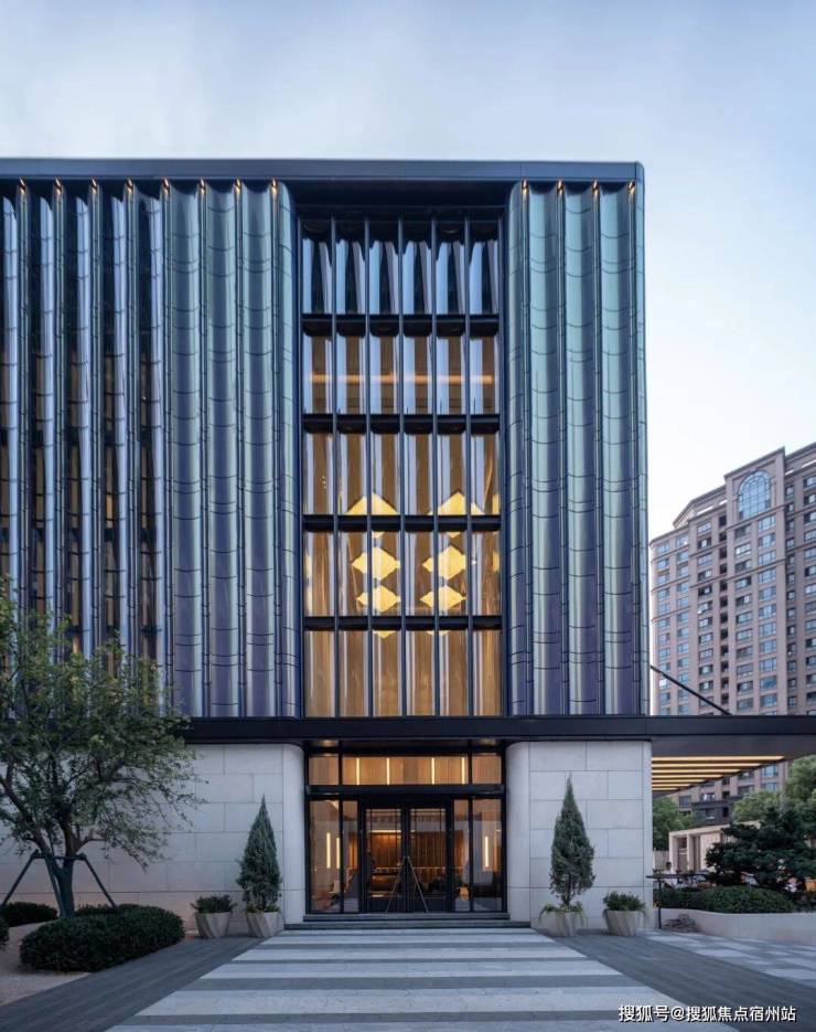 来到项目会所,就被其 流光幻彩铝板的外立面 所吸引。 不同角度有不同颜色呈现,造价昂 贵。大堂的玻璃也很吸睛,用的半钢化夹胶反弯弧玻璃,半径仅为约600mm,施工难度大、成本高!