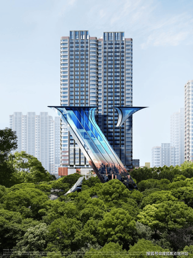 据悉,住宅部分的立面设计,蓝金交融的色调、雅致精细的造型,先锋感与经典感交织。