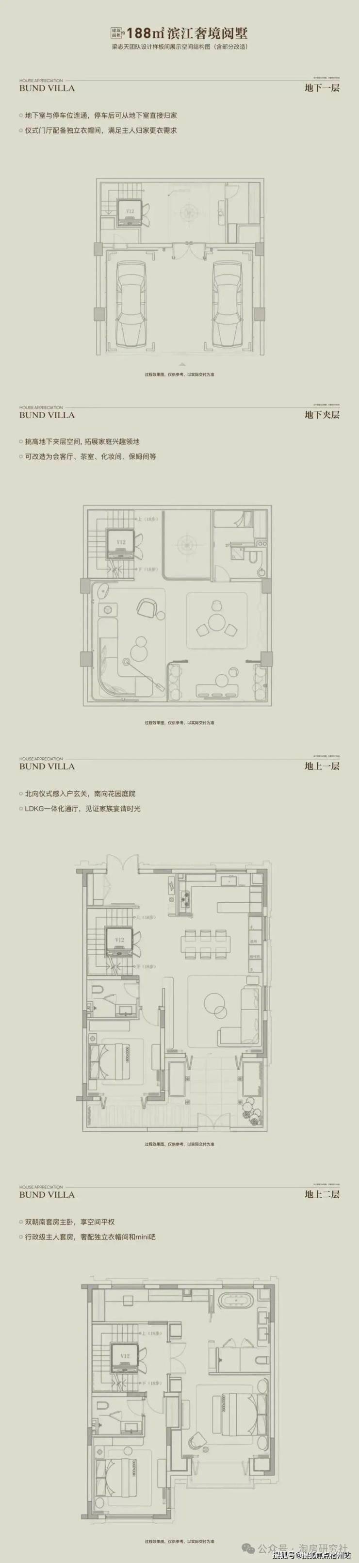 以 “全两层+会所”的形态革新、 花园露台地下室的全维空间、 大面宽短进深的奢适格局,重构别墅生活场景。
