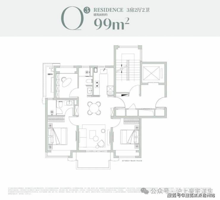 建面约 99㎡三房两厅两卫,一梯两户尊崇配置,3.05 米奢适层高尽显通透。经典飞机式户型,动静分区科学合理;LDK 一体化设计,空间通透连贯,升级家庭互动体验。南北直通格局,清风对流无阻;全卧室标配飘窗,延伸观景视野与实用空间。南向整体面宽达 9.9 米,其中客厅 3.6 米轩敞面宽、主卧 3.3 米舒适面宽,采光充足,尽显品质人居格调。