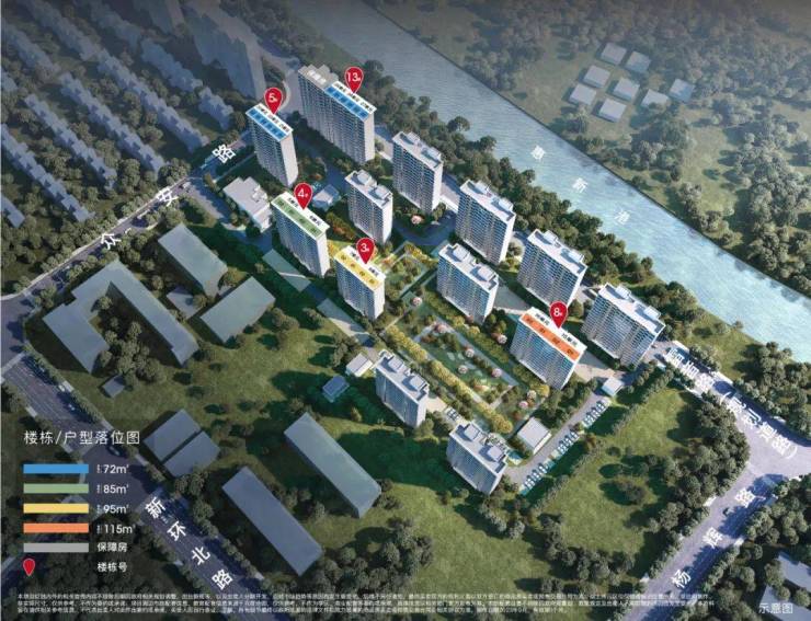 项目首开3、4、5、8、13#等5幢,首开房源356套,楼幢位置及户型分布如下