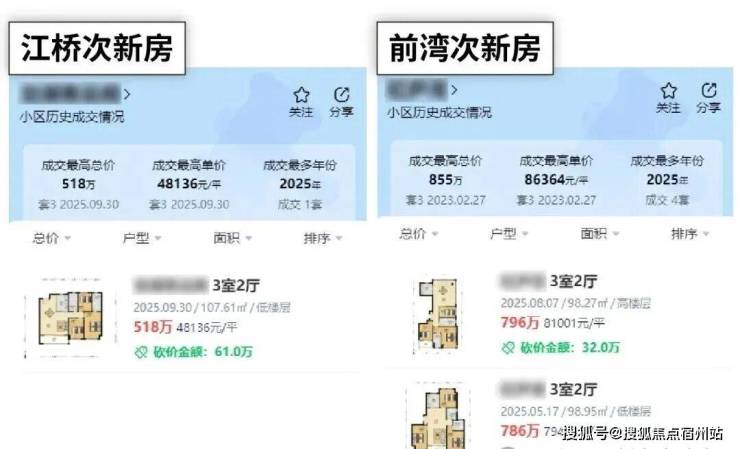 但现在再看,江桥次新二手房成交价只有4.8万/㎡,反观前湾次新二手房还能稳在8万/㎡!