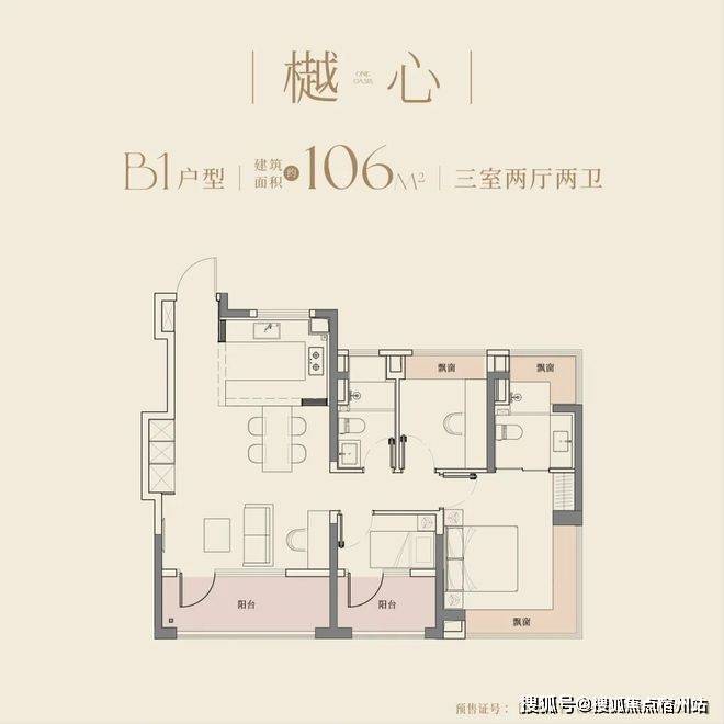建面约106㎡户型,更是以宽尺大横厅和270°的转角飘窗赚足了眼球,阳光与清风自由流淌,居住舒适度全面提升。LDKB一体化设计,在餐厨区布局万能中岛台,打破了厨房与餐厅的界限,延伸烹饪空间,增加收纳空间,更将社交功能融入其中,重塑中国人的情感场域。