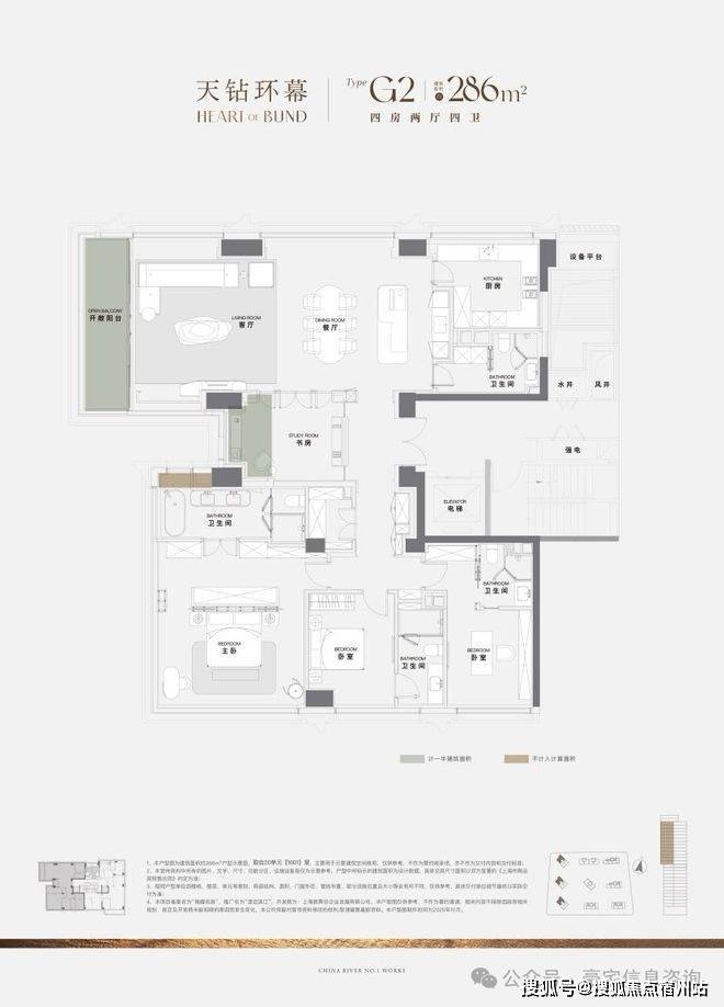 286㎡户型:采用270°环幕玻璃幕墙系统,三面无死角的视野,将黄浦江的浩渺与蜿蜒、日间的帆影与夜间的璀璨,毫无保留地框定为室内的流动巨幕,搭配LDKB一体化巨厅、全屋智能系统与定制化精装,重新定义滨江居住的奢适尺度。