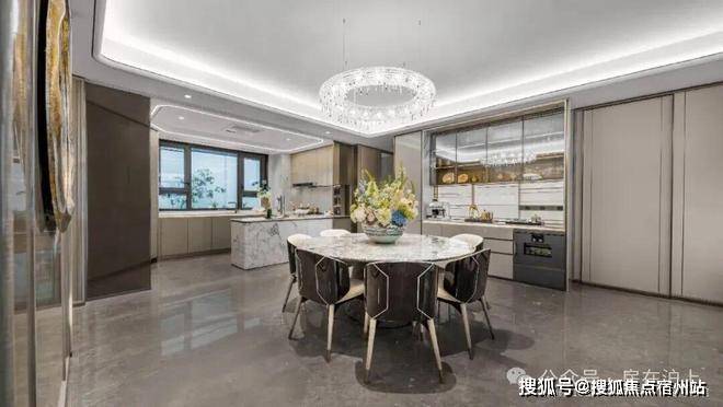 这样的尺度,让多人同时操作毫无拥挤感:半开放式的设计,中餐的煎炒煮炸,西餐的优雅从容,一键切换。家庭成员可围坐岛台煮上一壶咖啡、吃个慵懒的早餐或下午茶也很不错。
