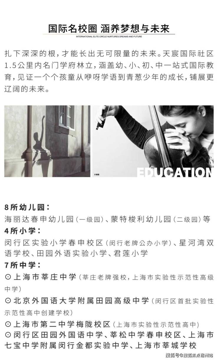 教育:上海私立蒙特梭利幼儿园、上海闵行实验小学、上海星河湾双语学校、上海市田园高级中学等,一站式全学龄学府林立。