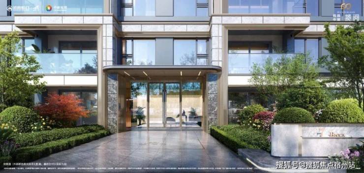 汲取世界知名度假酒店灵感,在入户大厅的外墙上采用香槟金铝型材与灰色石材,门头雨棚采用香槟金色弧形铝板装饰,搭配大玻璃面更加通透近人,营造颜值与尊贵并存的归家体验。