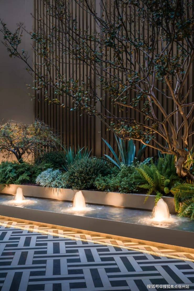 地库标准参照豪车展厅设计,采用贯穿式鱼尾灯坡道、超耐磨地坪,局部引入水磨石、水晶漆、铝饰面吊顶等高端公建化材质,以及三合一门禁系统实现无感通行,提升归家动线的品质感,对标高端酒店标准。