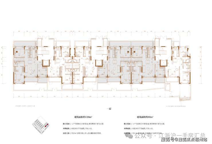 建面约120㎡3房2厅2卫/90㎡2房2厅2卫(一层下叠):