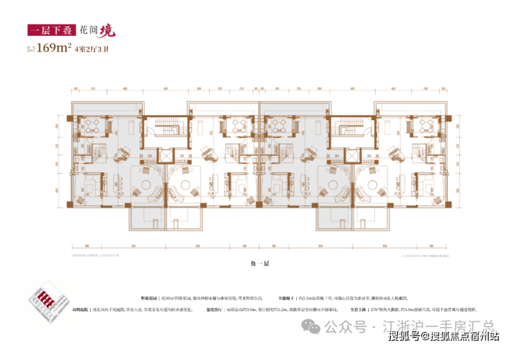 建面约169㎡4房2厅3卫(一层下叠):