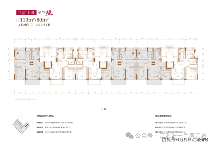 建面约110㎡3房2厅2卫/80㎡2房2厅2卫(三层上叠):