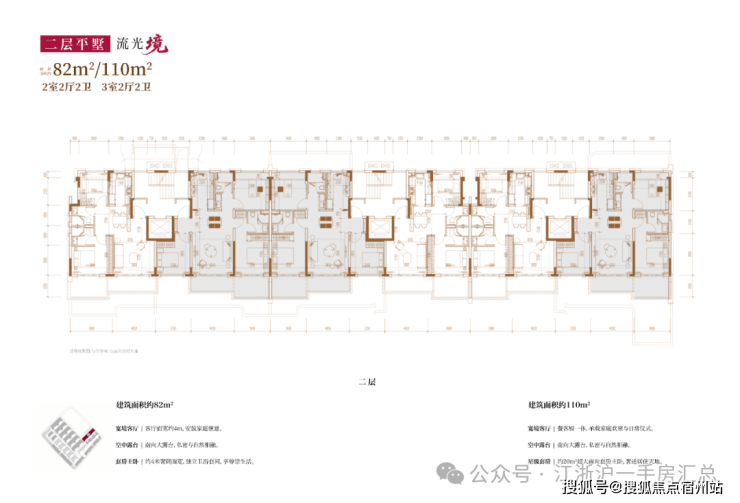 建面约80㎡2房2厅2卫/110㎡3房2厅2卫(二层平墅):