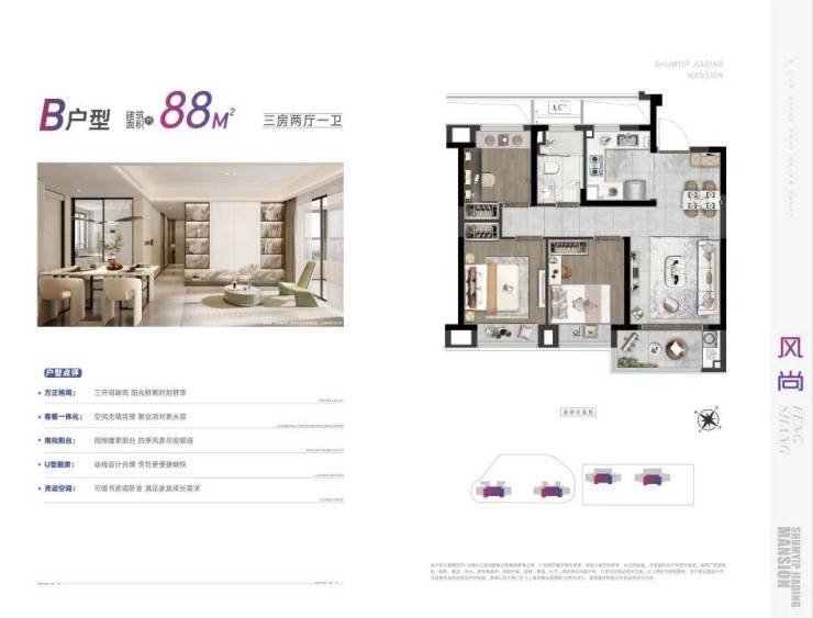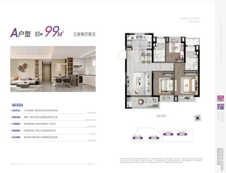 建面约99㎡的三房两厅两卫,很适合一家三口的上车的作品。三开间朝南,南北通透,动静分区,户型非常方正! 深嘉上府售楼处电话:400-8894-638