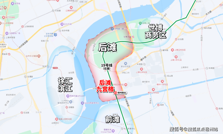 后滩九宫格北接世博文化公园、南邻前滩,西面隔黄浦江就是徐汇滨江,区位非常好,且是黄浦江核心段硕果仅存的滨江住宅区。