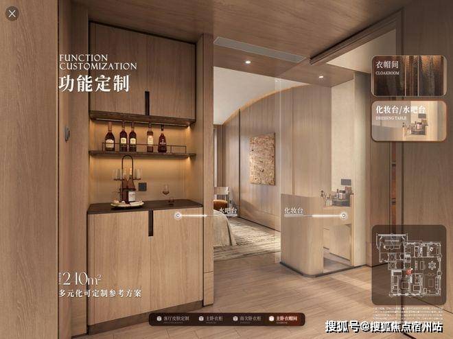 甚至还有功能定制,以240㎡主卧衣帽间为例,提供整体收纳、化妆台、水吧台等多种布局,精准贴合个人生活习惯。