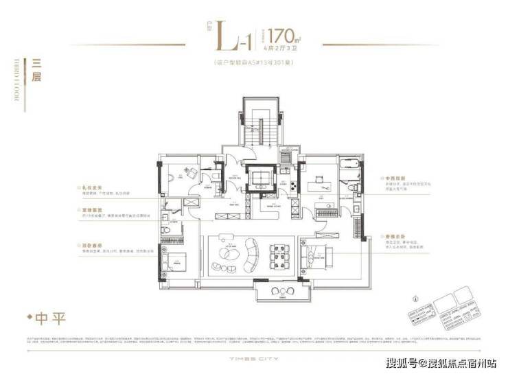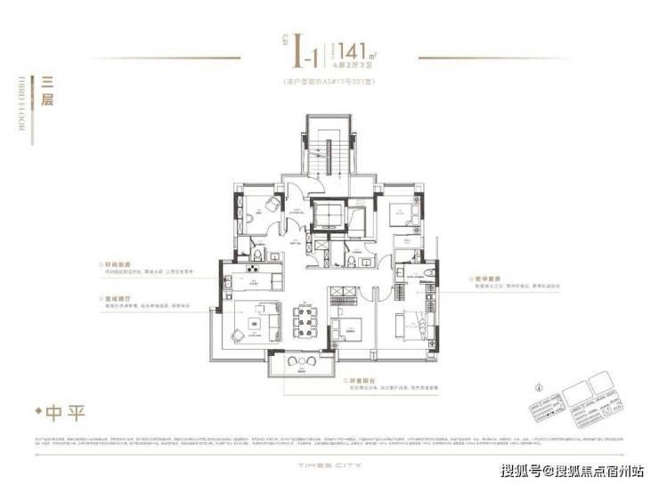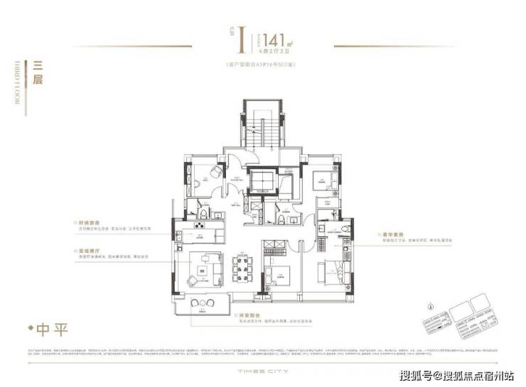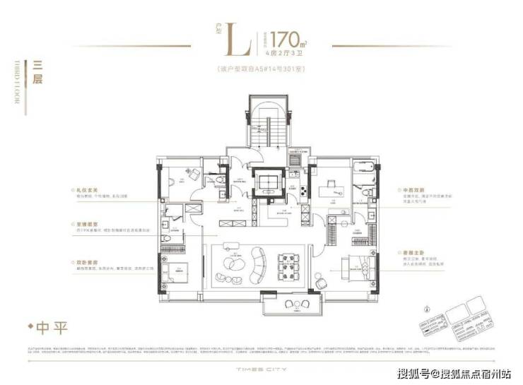 华润置地时代之城高层产品将百平上下的改善户型做出了轻奢级的居住体验,把约133㎡的改善四房做出了豪宅的尺度感。