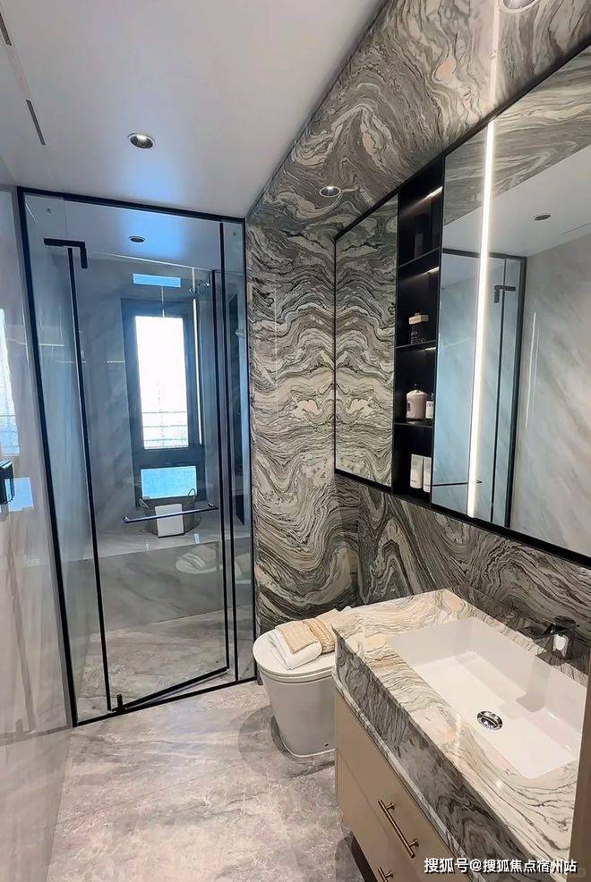项目总占地约 9.2 万方,总建面约 23.8 万方,容积率低至 2.0,绿化率高达 35%-45%,是杨浦主城罕见的低密大盘。社区规划 20 栋 11-18 层小高层,总户数 1280 户,车位配比 1:1.2,全人车分流设计,并配备地下三层精装车库,彻底解决主城停车难题。建筑由国际顶级事务所 Aedas 操刀,现代简约风格,外立面采用60% 石材 + 40% 玻璃组合,超大窗墙比,兼具厚重质感与通透采光,直面一线滨江景观。