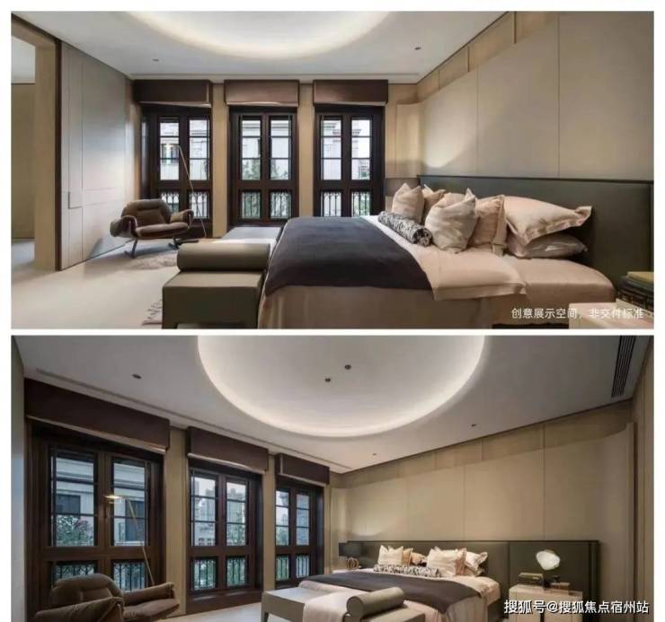 三楼整层为主卧套房,样板间设计了双开门入卧室,进入起居空间,样板间选择在这里放一些艺术装饰、设计吧台来彰显主人品味。