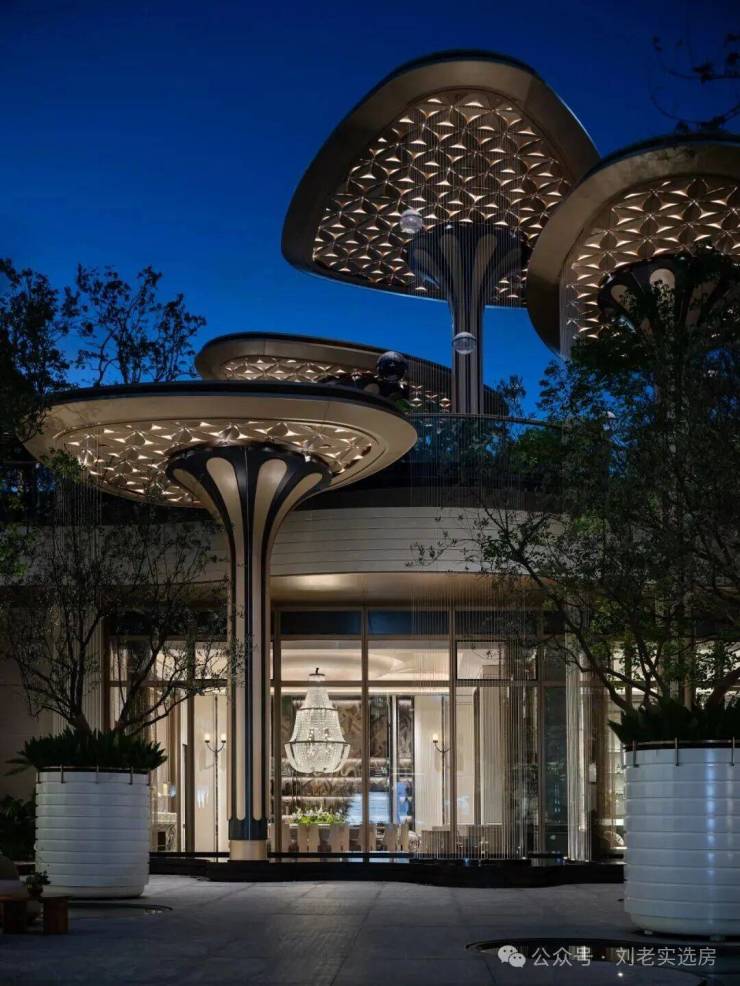 首先项目的入口是真的惊艳,门头顶部的500多片镂空透光铝板雕花花瓣,皆由项目LOGO精琢演化而来。这是3000万重金雕琢的细节,更是对品质的无声承诺。