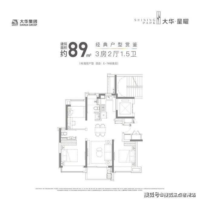 建面约99㎡3房2卫是项目的主力户型。