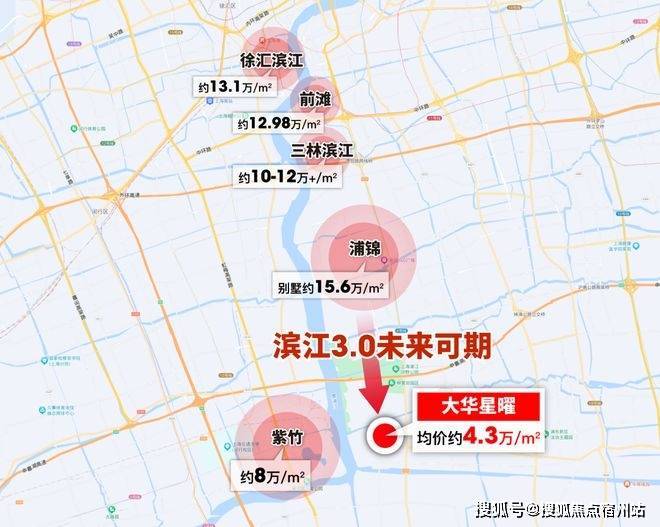 而同为闵行、同为三河交汇地区的浦江、目前联动价仅约4.3万/㎡的大华星曜就是千亿产业区大零号湾外溢的首选。