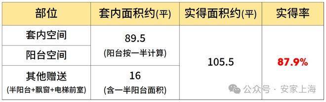 该户型大量的飘窗+双阳台设计,保证了每个功能间的通风采光,也提升了户型的实得率。经过专业建筑师测算,假设阳台全部封闭的情况下,项目建面约120㎡户型实得面积约105.5㎡,实得率约88%。(该实得率数据根据实得面积预估计算所得,仅供参考,不作为置业依据。最终得房率以购房合同为准)