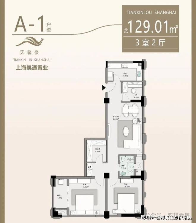 ● A户型(129.01㎡):三室两厅一卫,优化空间动线,专为改善型家庭提供优雅生活范本。