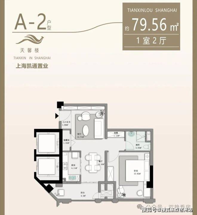● B户型(79.56㎡):一室两厅一卫,简约高效,满足都市新锐的品质刚需。