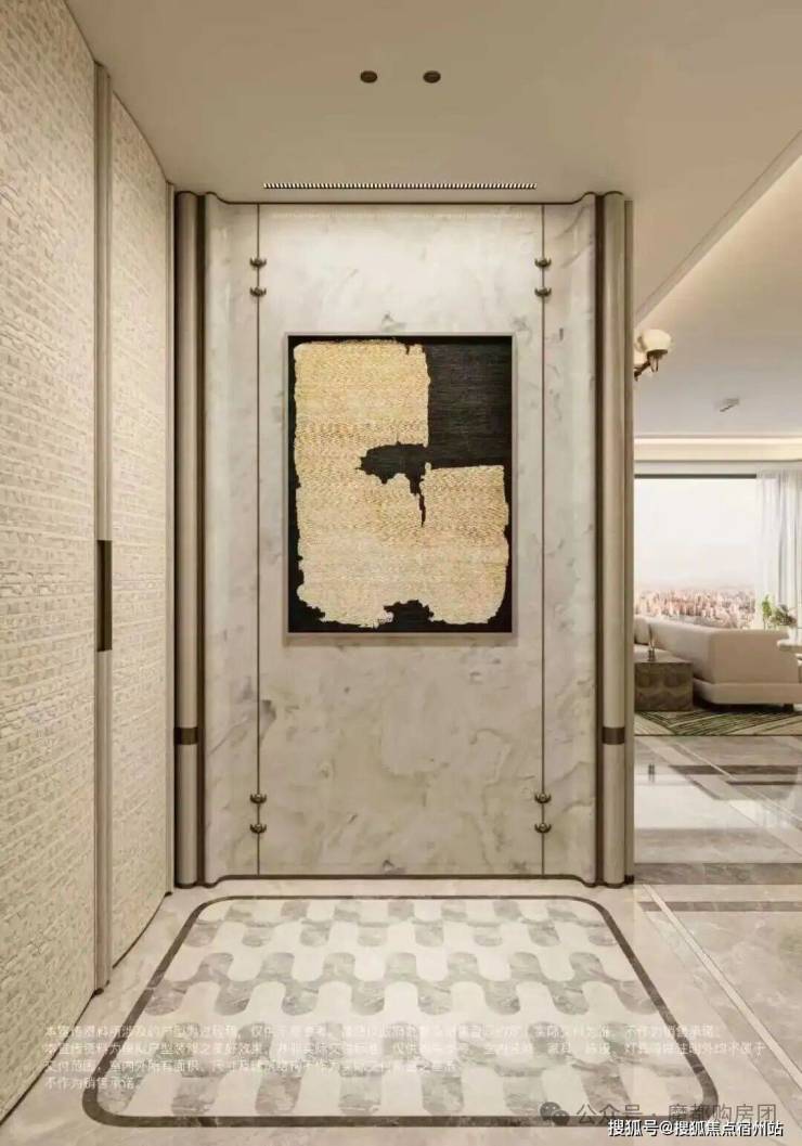 约2㎡玄关拼花采用 胜利 拱券 × 全水刀工艺 ! 超高压切割让石材切口平整无崩边,结构更稳定,搭配天然石材的高硬度属性,长久使用依旧光洁如新,省去后期维护烦恼。