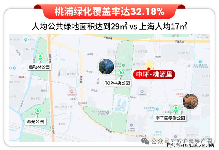 首先,有约百万方桃浦中央公园加持,不仅为居民提供了超大尺度的休闲空间,更让板块人均公共绿地面积达到29㎡,远超上海市17㎡的人均水平。