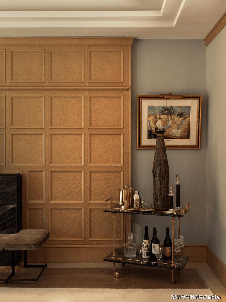 在动线设计上,影音雪茄室取消了独立门扇,书柜处被设置为通道。